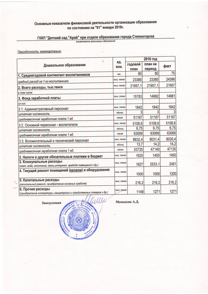 МКҚК "Арай» балабақшасы »қызметкерлер кестесі